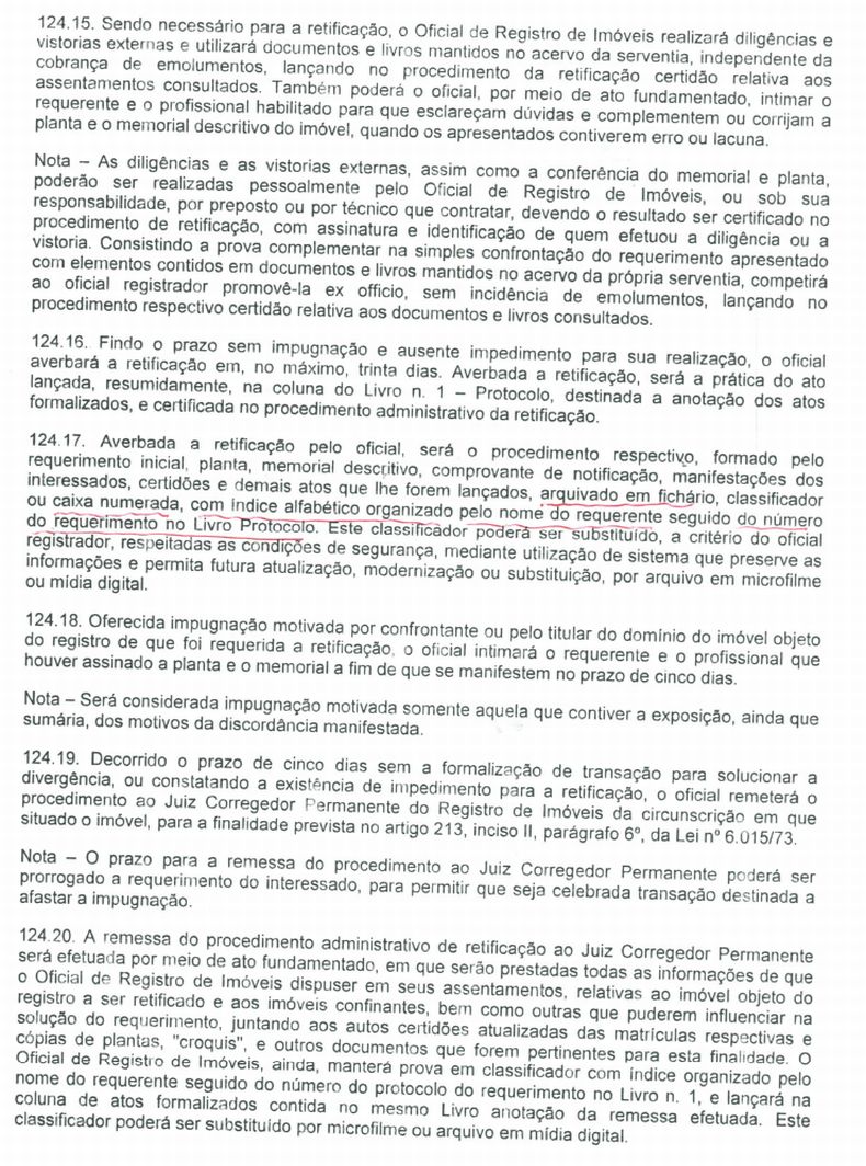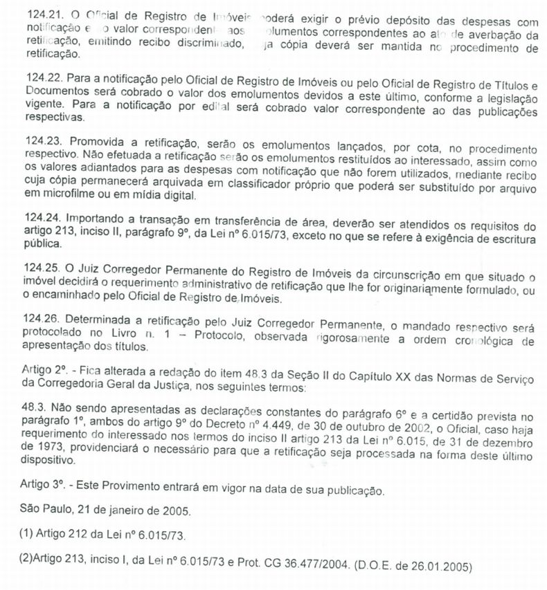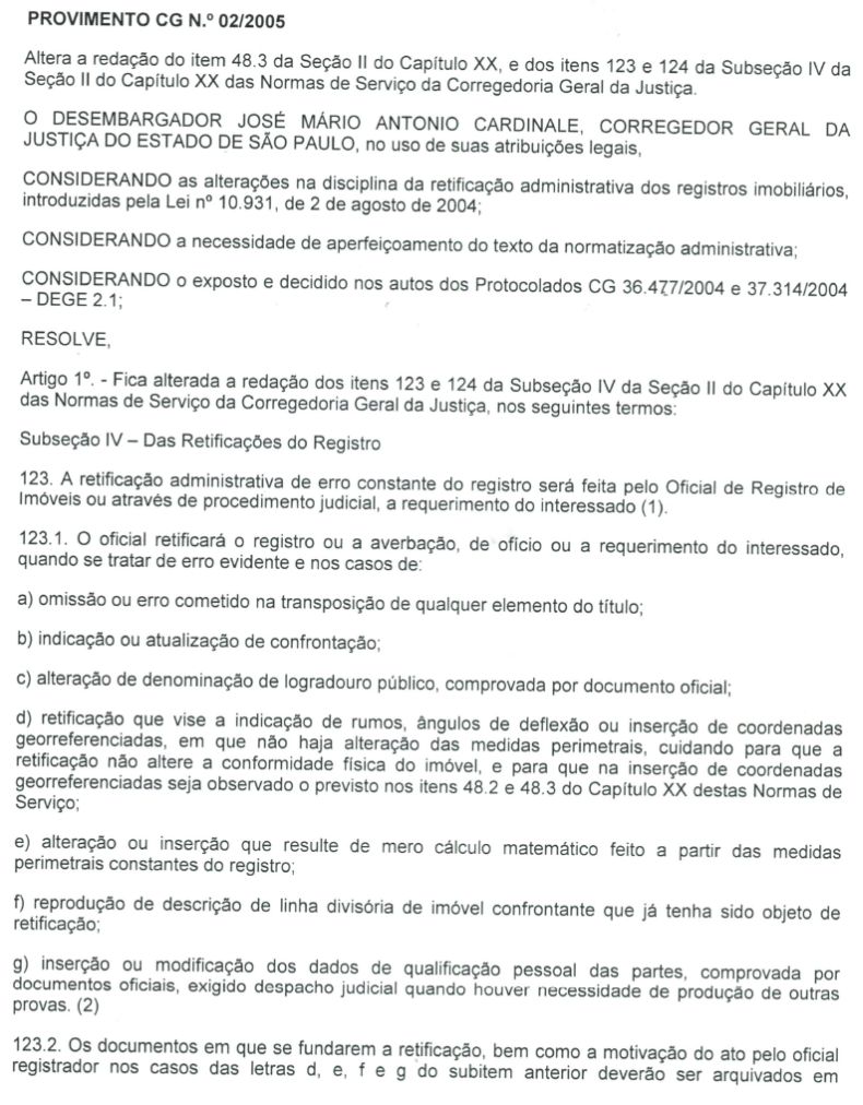 Normatização administrativa pela Egrégia Corregedoria Geral da Justiça do Estado de São Paulo através do Provimento CG n. 02/2003, de 21 de janeiro de 2005 - Itens 123 e 124 das "Normas de Serviço da Corregedoria Geral da Justiça" (NSCGJ).